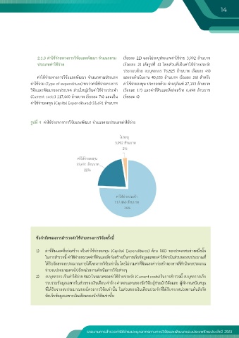 2.1.3 ค่�ใช้จ่�ยท�งก�รวิจัยและพัฒน� จำ�แนกต�ม (ร้อยละ 22) และไม่ระบุประเภทค่าใช้จ่าย 3,992 ล้านบาท