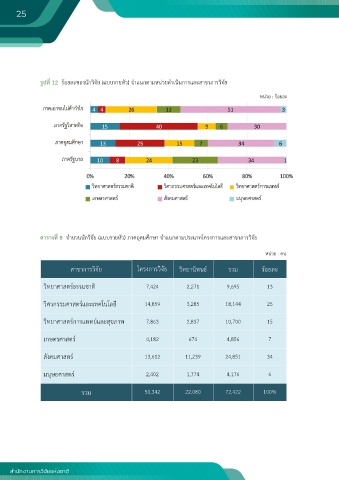 รูปท่ 12 ร้อยละของนักวิจัย (แบบรายหัว) จําแนกตามหน่วยดําเนินการและสาขาการวิจัย