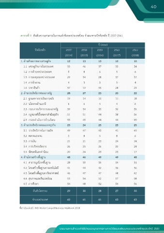 ต�ร�งท่ 9 อันดับความสามารถในการแข่งขันของประเทศไทย จําแนกตามปัจจัยหลัก ปี 2557-2561