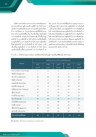 สามารถในการแข่งขันดีข้น ได้แก่ จีน เล่อนข้นมาอยู่อันดับท ในปี 2560) อินโดนีเซีย ลงมาอยู่อันดับที่ 43 (จากอันดับที่ 42