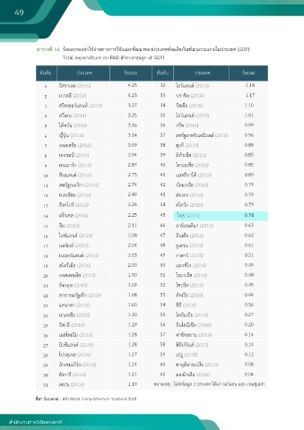 ต�ร�งท่ 16 ร้อยละของค่าใช้จ่ายทางการวิจัยและพัฒนาของประเทศต่อผลิตภัณฑ์มวลรวมภายในประเทศ (GDP)