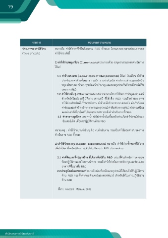 ประเภทของค่�ใช้จ่�ย หมายถึง ค่าใช้จ่ายท่ใช้ในกิจกรรม R&D ท้งหมด โดยแยกออกตามประเภทของ