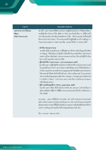 บุคล�กรท�งก�รวิจัยและ หมายถึง บุคลากรทุกคนท่มีส่วนร่วมในการปฏิบัติงานในโครงการวิจัยและพัฒนา