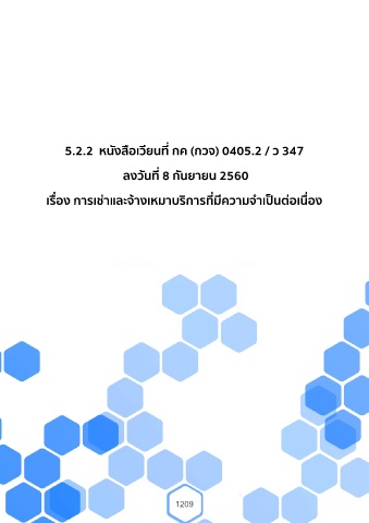 5.2.2 หนังสือเวียนที่ กค (กวจ) 0405.2 / ว 347 ลงวันที่ 8 กันยายน 2560 เรื่อง การเช่าและจ้างเหมาบริการที่มีความจ�าเป็นต่อเนื่อง 1209