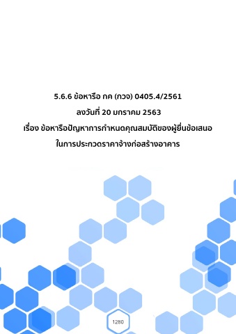 5.6.6 ข้อหารือ กค (กวจ) 0405.4/2561 ลงวันที่ 20 มกราคม 2563 เรื่อง ข้อหารือปัญหาการก�าหนดคุณสมบัติของผู้ยื่นข้อเสนอ ในการประกวดราคาจ้างก่อสร้างอาคาร 1280
