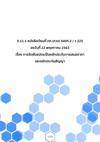 5.11.1 หนังสือเวียนที่ กค (กวจ) 0405.2 / ว 225 ลงวันที่ 22 พฤษภาคม 2563 เรื่อง การรับพันธบัตรเป็นหลักประกันการเสนอราคา และหลักประกันสัญญา 1319