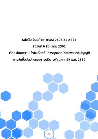 หนังสือเวียนที่ กค (กอร) 0405.2 / ว 374 ลงวันที่ 6 สิงหาคม 2562 เรื่อง ซ้อมความเข้าใจเกี่ยวกับการอุทธรณ์ตามพระราชบัญญัติ การจัดซื้อจัดจ้างและการบริหารพัสดุภาครัฐ พ.ศ. 2560 1334