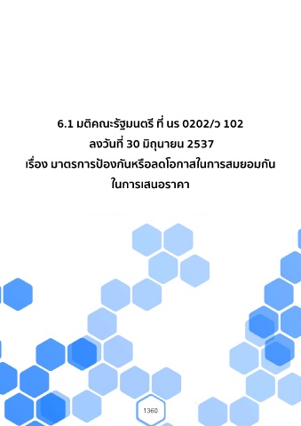 6.1 มติคณะรัฐมนตรี ที่ นร 0202/ว 102 ลงวันที่ 30 มิถุนายน 2537 เรื่อง มาตรการป้องกันหรือลดโอกาสในการสมยอมกัน ในการเสนอราคา 1360