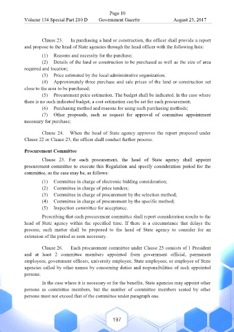 Clause 23. In purchasing a land or construction, the officer shall provide a report