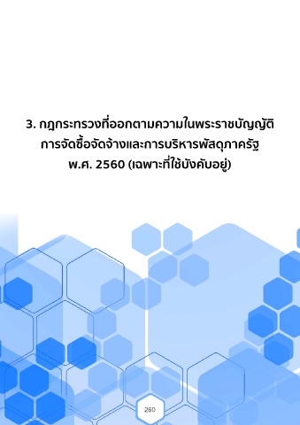 3. กฎกระทรวงที่ออกตามความในพระราชบัญญัติ การจัดซื้อจัดจ้างและการบริหารพัสดุภาครัฐ พ.ศ. 2560 (เฉพาะที่ใช้บังคับอยู่) 260