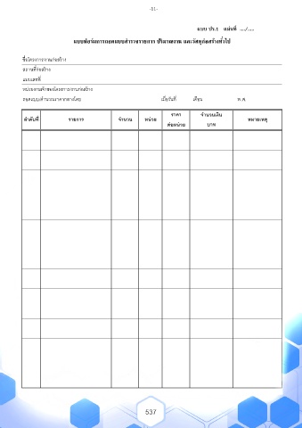 แบบฟอร์มการถอดแบบส ารวจรายการ ปรมาณงาน และวัสดุกอสร้างทั่วไป