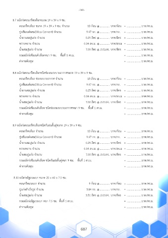 รวมผนังกอซีมนตຏบลຍอค༛ชนิดชองลมระบายอากาศหนา༛9 ซม. พืๅนทีไ༛1 ตร.ม. = .......................บาท/ตร.ม.
