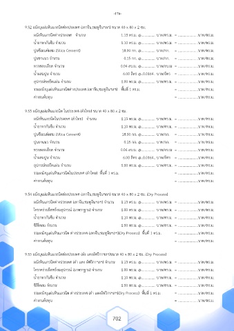 นๅ้าผสมปูน༛จ้านวน 6.00 ลิตร @..0.0164.. บาท/ลิตร = .......................บาท/ตร.ม.