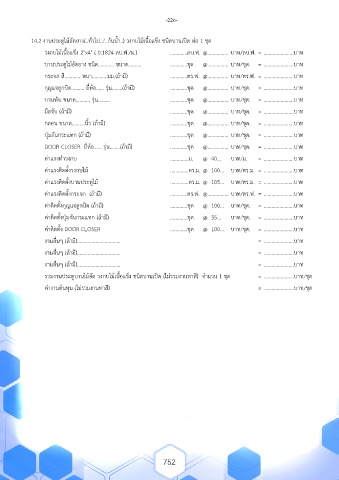 14.2 งานประตูเมຌอัดยาง(..ทัไวเป../..กันนๅ้า..) วงกบเมຌนืๅอขใง༛ชนิดบานปຂด༛ตอ༛1 ชุด