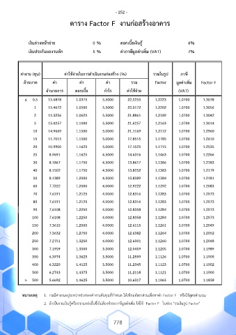 หมายหตุ༛ 1. กรณคางานอยูระหวางชวงของคางานตຌนทุนทีไก้าหนด༛฿หຌทียบอัตราสวนพืไอหาคา༛Factor F หรือ฿ชຌสูตรค้านวณ