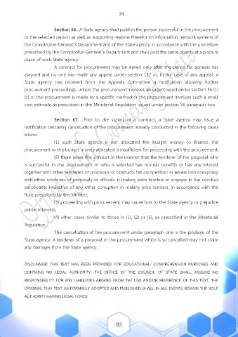 Section 67. Prior to the signing of a contract, a State agency may issue a