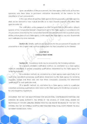 Section 68. Details, methods and procedures for the procurement of supplies not