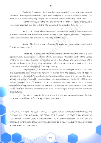 Section 71. The details of procurement of consultancy work in this Chapter by an